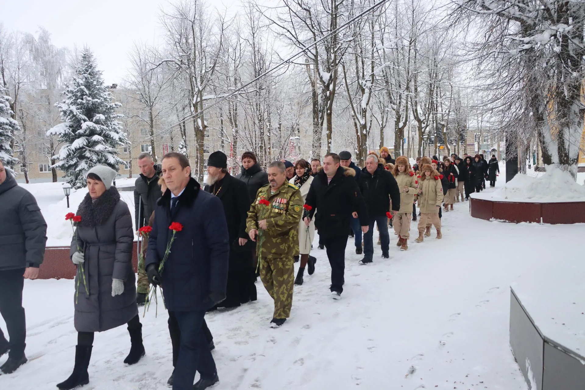 Руководитель фракции «Единая Россия» в Совете депутатов округа Владимир Хватов, депутаты-единороссы, молодогвардейцы, участники СВО и жители округа возложили цветы к стеле «Населенный пункт воинской доблести» в память о земляках, героически воевавших на фронте и трудившихся в тылу.